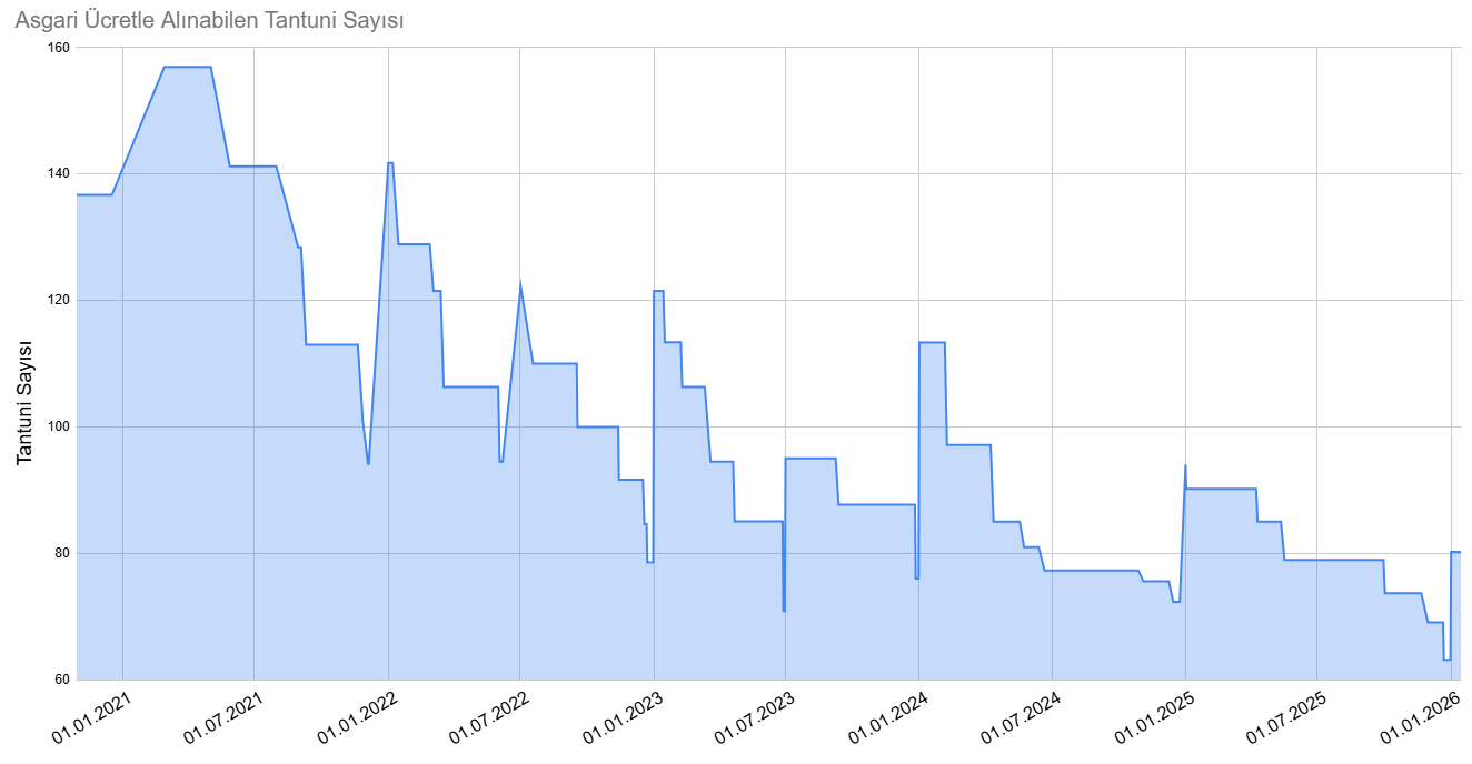 İktidarın 1 Ocak itibarıyla net 28 bin 75 lira olarak belirlediği yeni asgari ücret de kaybolan alım gücünü telafi etmekten çok uzak. Ergin’in hesaplamalarına göre, tantuni fiyatı sabit kalsa bile yeni maaşla alınabilen ürün sayısı ancak 80’e çıkabiliyor. Bu rakam ise yıl başları kıyaslandığında son 5 yılın en düşük başlangıç seviyesi olarak kayıtlara geçiyor. Yani “zamlı” maaş bile halkın sofrasını 5 yıl öncesinin gerisinde bırakıyor.