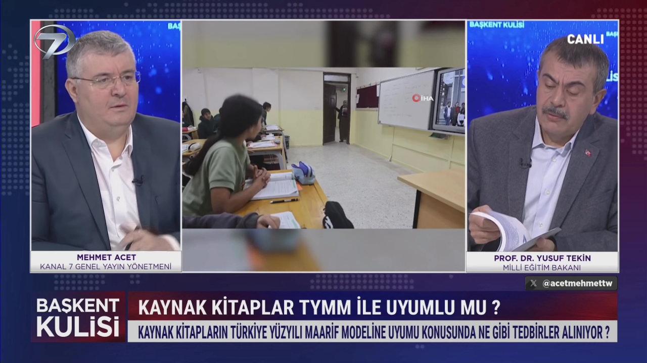 GÜNCEL HABER: Kanal 7 Genel Yayın Yönetmeni Mehmet Acet’in moderatörlüğünde yayımlanan Başkent Kulisi’nin bu haftaki konuğu Türkiye Cumhuriyeti Milli Eğitim Bakanı Yusuf Tekin oldu.