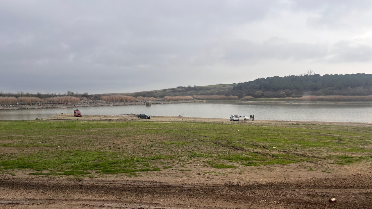 Tekirdağ’ın Hayrabolu ilçesindeki göletin büyük bölümünde su, kuraklık nedeniyle çekildi.
